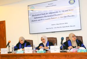 كلية العلوم جامعة ذي قار تناقش أطروحة الدكتوراه الموسومة لدراسة: ((A Clinical study of adiponectin, Leptin and some Inflammatory Biochemical parameters in Obese Diabetic and hypertensive patients in Thi-Qar province))