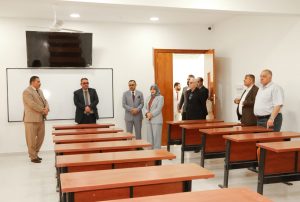 أجرت اللجنة جولة تفقدية واسعة شملت الأقسام العلمية كافة، رافقتهم فيها السيدة العميد ومعاونيها العلمي والإداري، حيث تم الاطلاع على المختبرات العلمية والقاعات الدراسيه لفحص جاهزيتها ومدى مواءمتها للأعداد الطلابية كما تم الاطلاع على بناية قسم التحليلات المرضية الجديدة التي تم تجهيزها وفق المعايير الحديثة، بالإضافة إلى الأبنية قيد الإنشاء الخاصة بقسم الكيمياء والتي ينتظر أن تشكل نقلة نوعية في القدرة الاستيعابية والبحثية للكلية.